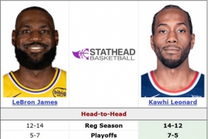 生涯至今,詹姆斯常規賽面對倫納德12勝14負,季后賽5勝7負。