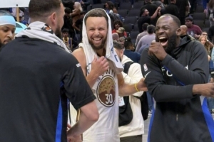 庫里、追夢賽后與克萊場邊聚首,三人看起來都非常開心。