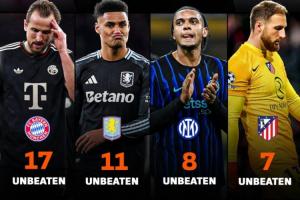 體育資訊01月23日訊 據(jù)LiveScore統(tǒng)計(jì),阿森納本賽季終結(jié)了多支豪門的連續(xù)不敗紀(jì)錄。其中包括拜仁、維拉、國米以及馬競。