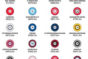 商業(yè)收入推動(dòng)了西班牙兩大豪門的崛起,盡管各俱樂部對“收入”的分類方式不同,但根據(jù)德勤對商業(yè)收入的定義,皇馬在上賽季創(chuàng)造了驚人的4.99億鎊商業(yè)收入,巴薩則以4.38億鎊緊隨其后,他們是唯二商業(yè)收入超過4億鎊的俱樂部。緊隨其后的是拜仁(3.88億鎊)、曼城(3.43億鎊)、曼聯(lián)(3.33億鎊)、巴黎(3.08億鎊)和利物浦(3.07億鎊),也都超過了3億英鎊。這些數(shù)字凸顯了即使在足球最富有的俱樂部之間,商業(yè)收入也存在巨大差距:前20名中有4家俱樂部的商業(yè)收入不到1億鎊。