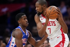 而火箭9個投籃里5個是杜蘭特出手,于是火箭本季加時賽來到1勝5負。