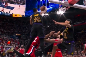 GIF-斯瑪特和米勒搶籃板,后者被吹犯規;快船挑戰成功,斯瑪特先犯規