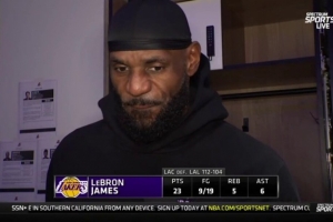 體育資訊1月23日訊 今日,湖人104-112客場不敵快船。賽后,湖人前鋒詹姆斯接受了采訪。