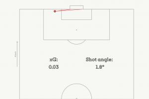迪亞斯底線極限救球后,絲滑過人,小角度勁射死角。這里進球的預期進球(xG)僅0.03,射門角度1.8°。