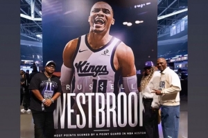在這場比賽中,國王官方為威少舉辦儀式,慶祝他此前加冕NBA歷史控衛(wèi)得分王。