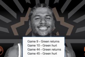 體育資訊01月24日訊 太陽與老鷹的比賽正在進(jìn)行,第二節(jié),杰倫·格林突然走回了更衣室。