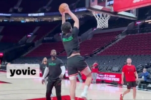 開拓者隊記Yovic曬出一組視頻,并報道:“楊瀚森今天與呂佩爾、庫克一起完成了賽前訓練,強度不小,而且內容明顯更偏向鋒線。