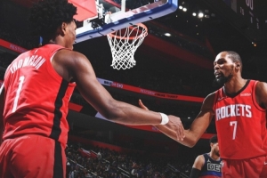 本場比賽火箭背靠背作戰,杜蘭特砍下32分6籃板3助攻1搶斷1蓋帽,正負值+18全場最高;阿門出戰40分鐘11中5,罰球5中5砍下15分9籃板7助攻2搶斷1蓋帽,正負值+11隊內僅次于KD。