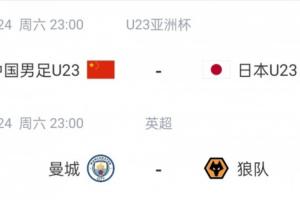 今晚U23亞洲杯決賽,U23國足vs日本,曼城vs狼隊