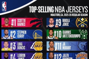 相關報道>>此前NBA官方公布了25-26賽季上半賽季球員的球衣銷量排行。
