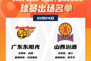 體育資訊1月24日訊 今晚19:35,廣東主場迎戰山西,賽前大名單出爐。