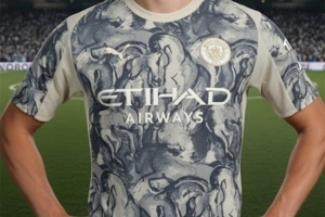 根據著名足球裝備網站FootyHeadlines透露,這套曼城與彪馬的農歷新年球衣設計致敬東方文化中的馬年,球衣以米白為底色,正面密布馬首圖案,構建出極具抽象感的視覺層次。