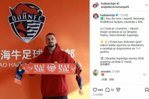 體育資訊1月24日訊 近日,青島海牛俱樂部官方宣布,塞爾維亞中衛(wèi)安杰爾科維奇加盟球隊(duì)。據(jù)塞爾維亞媒體“FudbalSrbije”報(bào)道,安杰爾科維奇與青島海牛簽訂了“1+1”的合同。