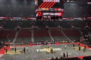 賽前,開拓者跟隊(duì)中文記者Victor Sun分享開拓者主場(chǎng)地板,并寫道:“NBA杯遇上萬圣節(jié)。”