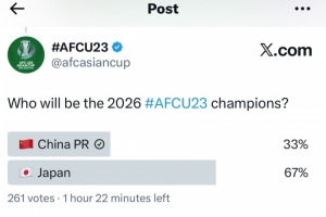 亞足聯官推發起了對最終奪冠球隊預測的投票,其中33%的球迷支持U23國足奪冠,67%的球迷更看好日本U23奪冠。