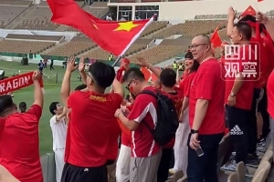 據“四川觀察”消息,在比賽開始前40分鐘決賽比賽場地費薩爾王子體育場看臺上已經聚滿了遠道而來的中國球迷,鏗鏘有力的加油聲震徹場館。