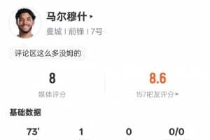 體育資訊1月25日訊 英超第23輪,曼城主場迎戰(zhàn)狼隊。馬爾穆什首發(fā)出戰(zhàn),貢獻1粒進球,送出1次關(guān)鍵傳球,還有1次射中立柱,評分8.0。
