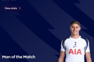 體育資訊1月25日訊 英超第23輪,熱刺2-2戰(zhàn)平伯恩利。賽后,英超聯(lián)賽官方宣布,熱刺后衛(wèi)范德芬當(dāng)選本場比賽最佳球員。
