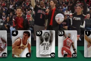 五件球衣分別是:23喬丹、4杰里·斯隆、10鮑勃·樂(lè)福、33皮蓬、1羅斯