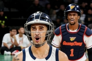 體育資訊1月25日訊 廣東外援薩姆納社媒更新,曬出了一張自己和奎因身穿護具打球的P圖。