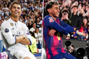隨后亞馬爾坐在了場(chǎng)邊的廣告牌上,雙手抱在胸前來(lái)慶祝這個(gè)進(jìn)球。這樣的慶祝動(dòng)作與C羅效力皇馬時(shí)期曾做出的經(jīng)典慶祝動(dòng)作極為相似。