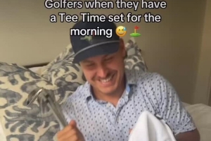 詹姆斯轉發了一段標題為“當預約好早上開球時間后的高爾夫球手”在床上興奮期待的視頻,并評論道:“????????????????????等打完這趟客場之旅,我就會是這樣!”