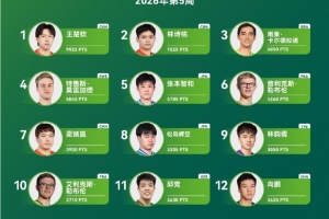 WTT常規挑戰賽馬斯喀特站男單冠軍溫瑞博排名上升7個名次位列第24,刷新個人職業生涯排名新高;亞軍帕特里克·弗朗西斯卡排名上升1個名次位列第19;八強黃鎮廷排名上升13個名次位列第45。