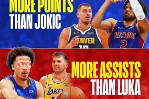 康寧漢姆場均25.6分>約基奇的25.2分;場均9.8次助攻>東契奇的9.5次;活塞目前8勝2負(fù)高居?xùn)|部第一。