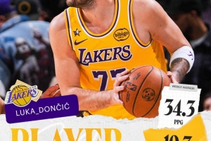 湖人官方發布東契奇周最佳海報:東契奇本賽季第二次榮膺NBA西部周最佳球員。
