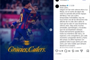 盡管今天我選擇踏上另一條道路,但無論身在何處,我都會像一名普通球迷一樣繼續支持你們,為你們加油。巴薩和拉瑪西亞不僅是我成長道路上的重要部分,更將永存在我的生命之中。感謝你們所做的一切。