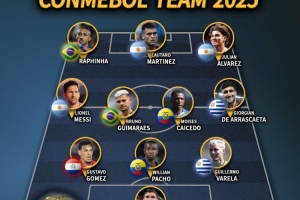 體育資訊1月27日訊 iffhs(注:iffhs即國際足球歷史和統計聯合會,International Federation of Football History and Statistics)選出南美2025年最佳陣容,梅西、拉菲尼亞等球員入選。
