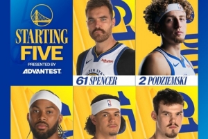 本場(chǎng)比賽勇士庫(kù)里、追夢(mèng)等7人缺席,本場(chǎng)比賽首發(fā)陣容為:斯潘塞、穆迪、波斯特、波杰姆斯基、桑托斯。