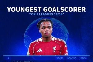 體育資訊1月28日訊 德國轉會市場列出了本賽季五大聯賽最年輕進球者排名,恩古莫哈居首。