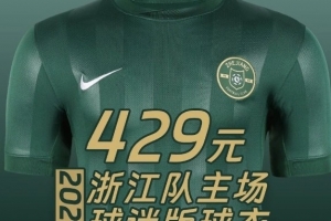 體育資訊1月28日訊 根據浙江足球俱樂部官方的消息,浙江隊新賽季主場球迷版球衣的會員售價為429元。
