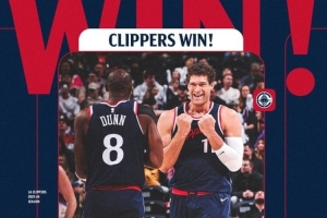 賽后快船發(fā)布贏球海報(bào),洛佩斯和鄧恩登上封面。