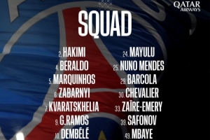 體育資訊1月28日訊 北京時間明天凌晨4點,歐冠聯賽階段第8輪,巴黎主場對陣紐卡,巴黎公布了此役球隊大名單。