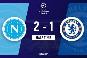 上半場傷停補時3分鐘,半場結束,切爾西暫1-2那不勒斯。